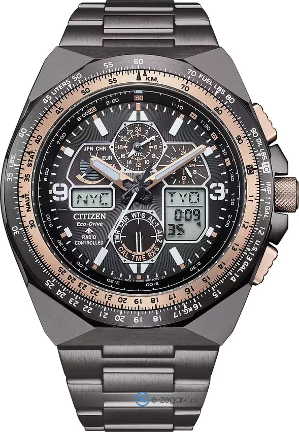 Citizen JY8146-54E - męski zegarek przeznaczony dla osób szukających zegarka z serii Citizen Promaster. Niestereotypowy wygląd czasomierza osiągnięto także dzięki tarczy w kolorze czarnym. Zegarek ten pokazuje aktualny czas w formacie analogowo - cyfrowym dzięki temu odczyt jest bezproblemowy. Koperta szeroka jest na 46 mm - ma okrągły kształt.