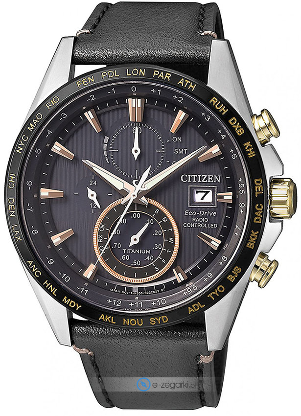 Citizen AT8158-14H - męski zegarek kierowany dla osób szukających zegarka z rodziny Citizen Radio Controlled. Niebanalny wygląd zegarka uzyskano także dzięki tarczy w kolorze szarym. Godzina przedstawiona jest w sposób analogowy co bez trudu pozwala ją odczytać. Koperta została pokryta kolorem srebrno złotym szeroka jest na 42 mm oraz ma grubość 10 mm - ma okrągły kształt.