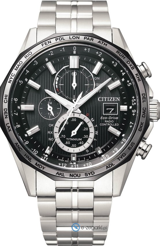 Model męski AT8218-81E z kolekcji Citizen Radio Controlled marki Citizen. Styl zapewnia wysokiej klasy cyferblat w kolorze czarnym. Zegarek ten pokazuje godzinę w formacie analogowym dzięki czemu odczyt jest bezproblemowy. Koperta jest ozdobiona kolorem stalowym szeroka jest na 45 mm oraz ma grubość 11 mm - w kształcie okrągłym.