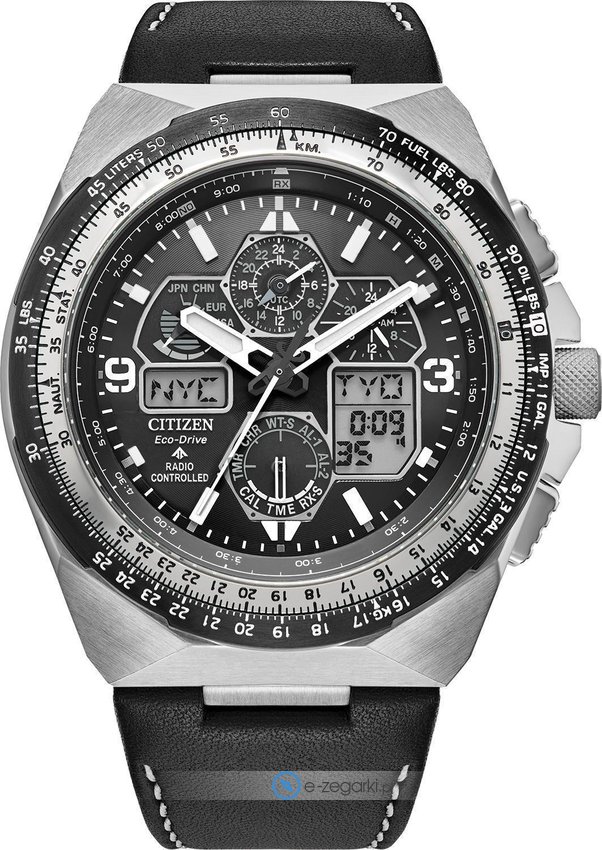 Model męski JY8149-05E należy do kolekcji Citizen Radio Controlled marki Citizen. Nieschematyczny wygląd zegarka uzyskano także dzięki tarczy w kolorze czarnym. Godzina pokazywana jest w sposób analogowo - cyfrowy co bez trudu pozwala ją odczytać. Koperta w odcieniach koloru stalowego szeroka jest na 46 mm oraz ma grubość 15 mm - charakteryzuje się okrągłym kształtem.