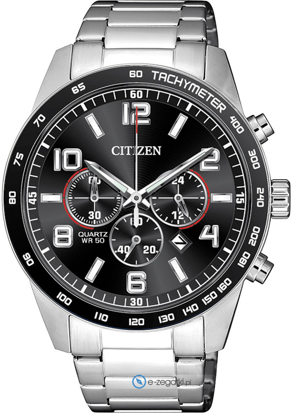 Zegarek męski AN8180-55E marki Citizen to stylowe połączenie funkcjonalności a także modnego designu. Model ten w gamie pozostałych zegarków tego producenta występuje w serii Citizen Sports. Niebanalną konstrukcję zegarka uzyskano dzięki tarczy w kolorze czarnym. Zaprezentowana metodą analogową bieżąca godzina jest czytelna i szybka do sprawdzenia. Koperta w odcieniach koloru stalowego szeroka jest na 40 mm oraz ma grubość 14 mm - charakteryzuje się okrągłym kształtem.