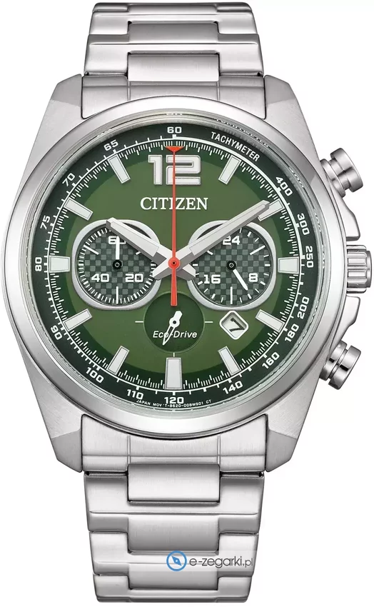 Zegarek męski CA4640-50X marki Citizen to stylowe połączenie funkcjonalności a także modnego wzornictwa. Model ten w gamie innych zegarków tego producenta występuje w serii Citizen Sports. Stylu nadaje wysokiej jakości cyferblat w kolorze zielonym. Zegarek ten pokazuje godzinę w formacie analogowym dzięki temu odczyt jest bezproblemowy. Koperta jest w kolorze stalowym szeroka jest na 41 mm - posiada okrągły kształt.