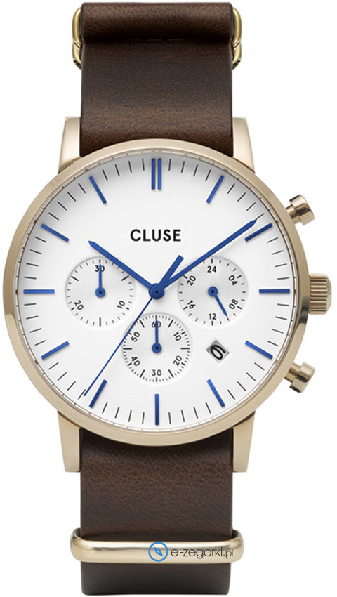 Zegarek męski CW0101502009 marki Cluse to stylowe połączenie funkcjonalności i modnego designu. Model ten w gamie innych zegarków tego producenta występuje w serii Cluse Aravis. Cyferblat zegarka jest w kolorze białym. Zegarek ten prezentuje aktualny czas w formacie analogowym dzięki temu odczyt jest bezproblemowy. Koperta jest w kolorze złotym szeroka jest na 40 mm oraz ma grubość 11 mm - w kształcie okrągłym.