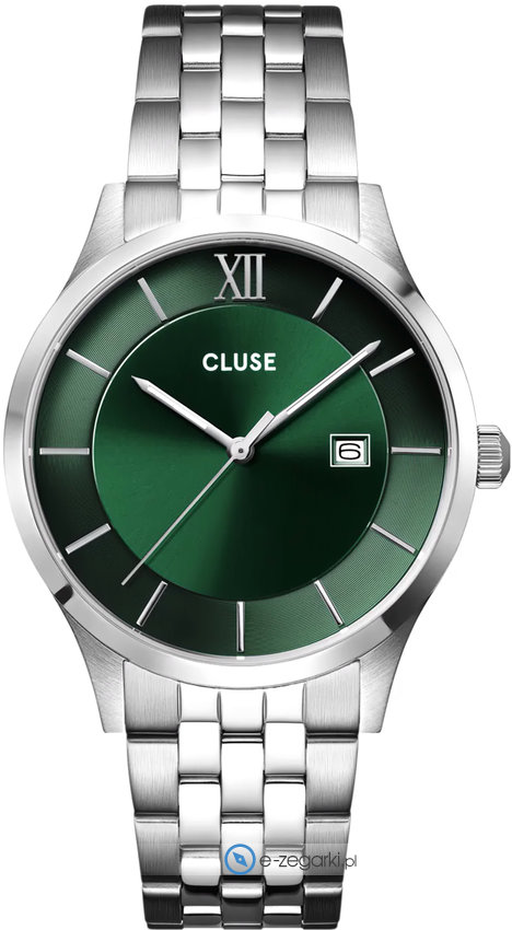 Zegarek męski CW22702 marki Cluse to idealne połączenie funkcjonalności oraz modnego wzornictwa. Model ten w gamie innych zegarków tego producenta występuje w serii Cluse Aravis. Wysokiej trwałości cyferblat zegarka ozdobiono zielonym kolorem. Pokazana metodą analogową aktualna godzina jest czytelna i szybka do sprawdzenia. Koperta została ozdobiona kolorem srebrnym szeroka jest na 40 mm oraz ma grubość 7 mm - cechuje się okrągłym kształtem.