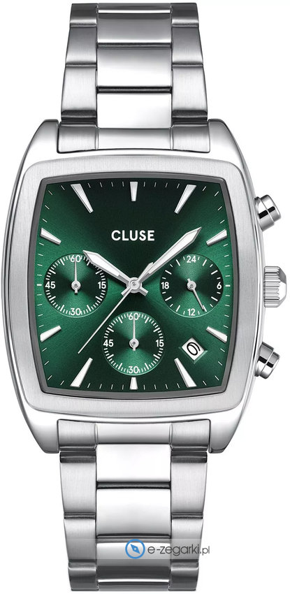 Męski zegarek CW52002 z serii Cluse Quartaut Chronograph marki Cluse to połączenie estetyki oraz nowatorskich mechanizmów. Styl zapewnia wysokiej jakości cyferblat w kolorze zielonym. Zegarek ten prezentuje aktualny czas w formacie analogowym dzięki czemu odczyt jest bardzo łatwy. Koperta jest w kolorze srebrnym szeroka jest na 35 mm oraz ma grubość 10 mm - charakteryzuje się prostokątnym kształtem.