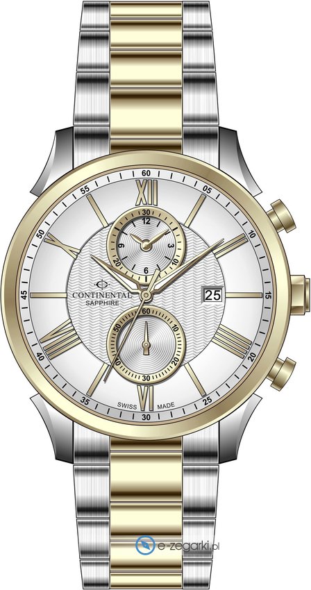 Zegarek męski 17601-GC312110 marki Continental to idealna pozycja dla ludzi ceniących sobie dbałość o szczegóły oraz bezproblemowe działanie mechanizmów. Styl zapewnia wysokiej jakości cyferblat w kolorze jasnym. Aktualna godzina pokazywana jest w sposób analogowy co intuicyjnie pozwala ją odczytać. Koperta jest w kolorze srebrno złotym szeroka jest na 44 mm - posiada okrągły kształt.