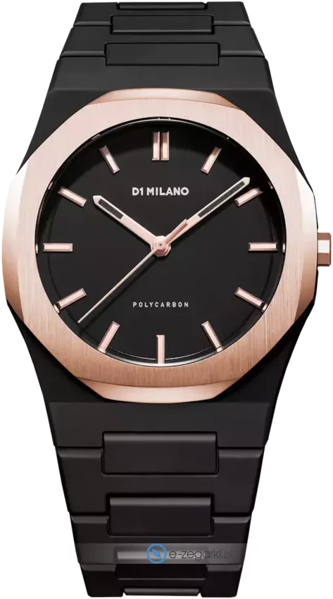 Model PCBJ15 marki D1 Milano to stylowy zegarek naręczny męski, który posiada ciekawe rozwiązania i funkcje. Niestereotypowy wygląd zegarka uzyskano m.in. poprzez tarczę w kolorze czarnym. Zaprezentowana metodą analogową bieżąca godzina jest czytelna i łatwa do sprawdzenia. Koperta jest w kolorze czarnym szeroka jest na 40 mm oraz ma grubość 8 mm.