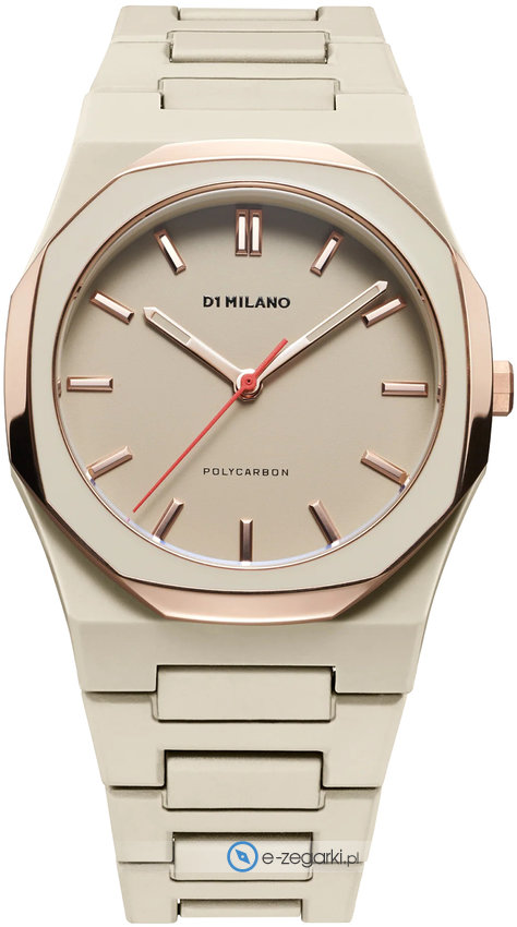 Zegarek męski PCBJ36 marki D1 Milano to dobre połączenie funkcjonalności oraz modnego designu. Charakter zapewnia wysokiej klasy tarcza w kolorze beżowym. Zaprezentowana metodą analogową bieżąca godzina jest czytelna i szybka do odczytania. Koperta została ozdobiona kolorem beżowym szeroka jest na 40 mm oraz ma grubość 9 mm.