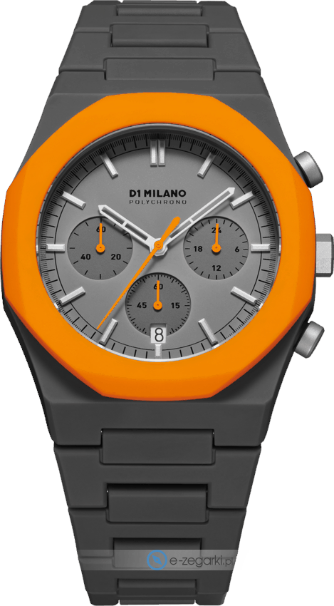 Zegarek męski PHBJ01 marki D1 Milano to stylowe połączenie funkcjonalności oraz ciekawego wzornictwa. Niebanalną stylistykę czasomierza osiągnięto dzięki tarczy w kolorze szarym. Koperta w barwach koloru grafitowego szeroka jest na 40 mm oraz ma grubość 11 mm - wyróżnia się ośmiokątnym kształtem.