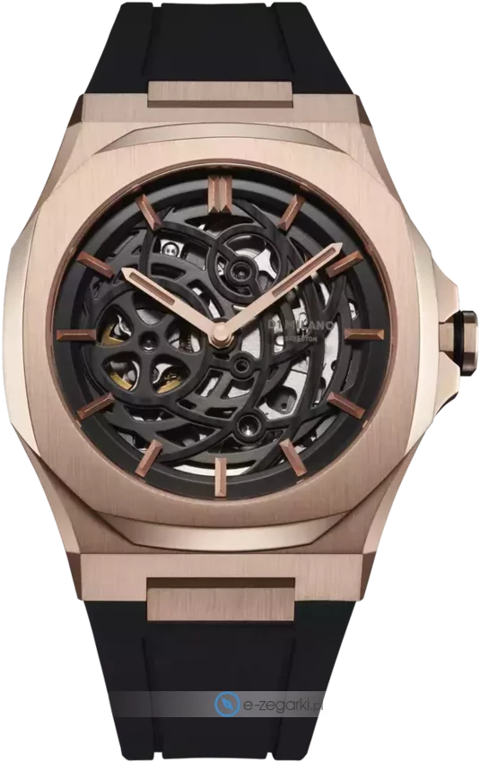 Zegarek męski SKRJ12 marki D1 Milano to idealne połączenie funkcjonalności i modnego wzornictwa. Cyferblat zegarka jest w kolorze czarnym. Aktualna godzina pokazywana jest w sposób analogowy co intuicyjnie pozwala ją odczytać. Koperta w barwach koloru różowo złotego szeroka jest na 41 mm oraz ma grubość 11 mm.