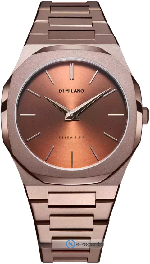 Zegarek męski UTBJ10 marki D1 Milano to stylowe połączenie funkcjonalności i ciekawego wzornictwa. Wysokiej jakości cyferblat zegarka pokryto brązowym kolorem. Zegarek ten prezentuje godzinę w formacie analogowym dzięki czemu odczyt jest intuicyjny. Koperta szeroka jest na 40 mm oraz ma grubość 9 mm.