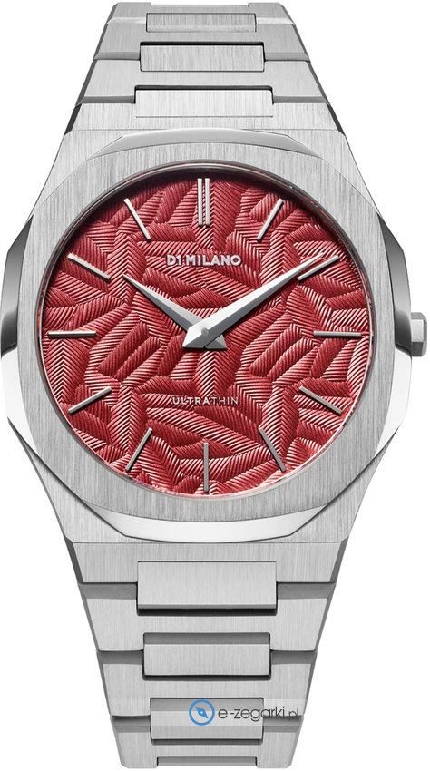 Model UTBJ33 marki D1 Milano to elegancki zegarek naręczny męski, który jest wyposażony w ciekawe rozwiązania i funkcje. Charakterystyczną konstrukcję zegarka uzyskano z pomocą tarczy w kolorze czerwonym. Zaprezentowana metodą analogową bieżąca godzina jest czytelna i prosta do sprawdzenia. Koperta w barwach koloru srebrnego szeroka jest na 40 mm oraz ma grubość 6 mm.