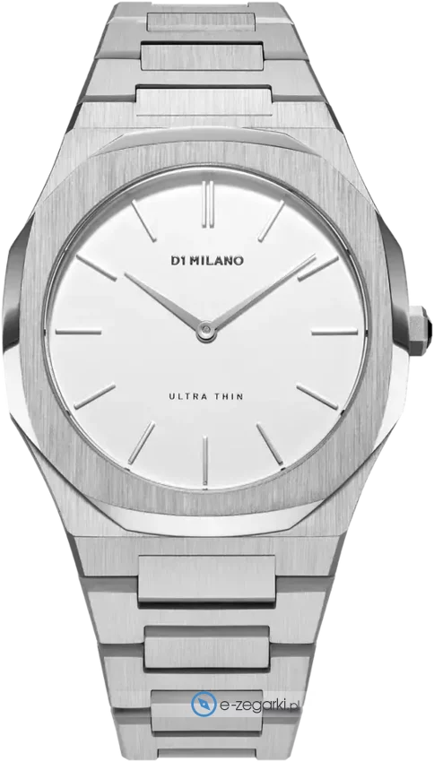Zegarek męski UTBL01 marki D1 Milano to dobra propozycja dla ludzi ceniących sobie dbałość o detale a także sprawne funkcjonowanie mechanizmów. Niebanalny wygląd zegarka osiągnięto również dzięki tarczy w kolorze białym. Godzina zaprezentowana jest w sposób analogowy co intuicyjnie pozwala ją odczytać. Koperta jest pokryta kolorem srebrnym szeroka jest na 38 mm oraz ma grubość 6 mm.