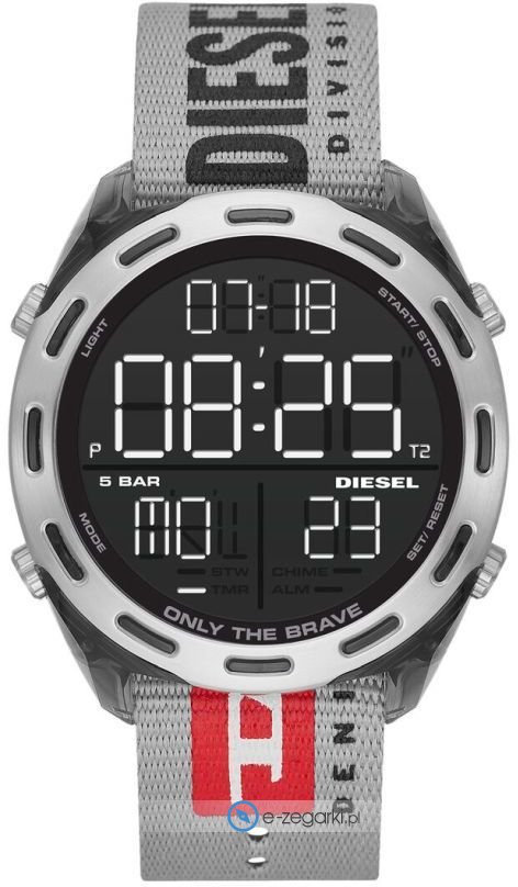 Zegarek męski DZ1894 marki Diesel to ciekawa pozycja dla ludzi ceniących sobie dbałość o szczegóły a także sprawne funkcjonowanie mechanizmów. Wysokiej jakości tarczę zegarka pokryto czarnym kolorem. Aktualna godzina przedstawiona jest w sposób cyfrowy co intuicyjnie pozwala ją odczytać. Koperta została pokryta kolorem szarym szeroka jest na 47 mm oraz ma grubość 14 mm - charakteryzuje się okrągłym kształtem.