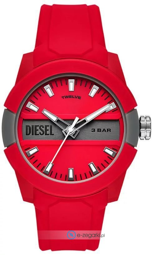 Zegarek DZ1980 zasilany jest za pomocą baterii kwarcowej. Pasek koloru czerwonego zrobiony jest z wysokiej jakości tworzywa sztucznego.