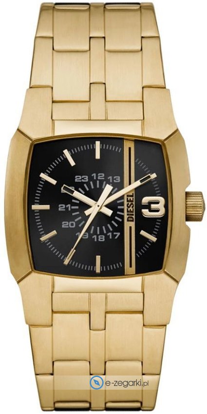 Model DZ2151 marki Diesel to stylowy zegarek naręczny męski, który wyposażono w pomysłowe rozwiązania i funkcje. Ciekawy wygląd zegarka uzyskano m.in. poprzez tarczę w kolorze czarnym. Zaprezentowana metodą analogową bieżąca godzina jest czytelna i prosta do sprawdzenia. Koperta w odcieniach koloru złotego szeroka jest na 36 mm oraz ma grubość 10 mm.