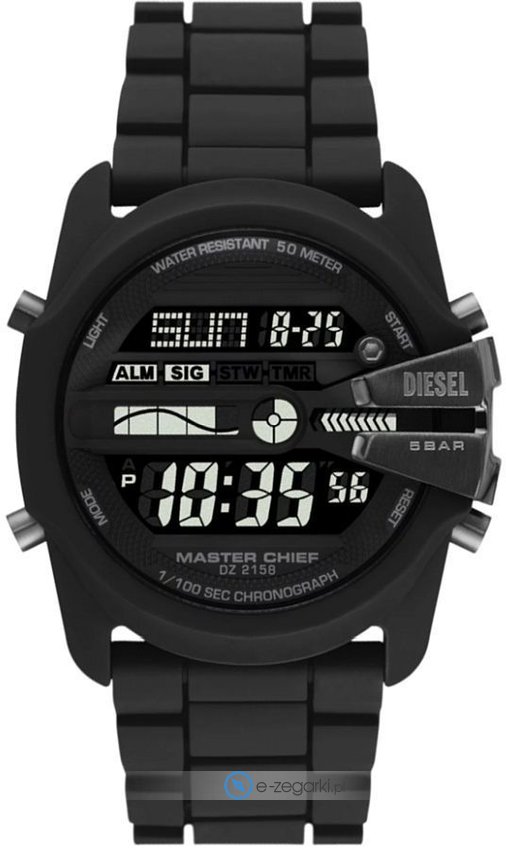 Model DZ2158 marki Diesel to gustowny zegarek naręczny męski, który wyposażono w pomysłowe rozwiązania oraz funkcje. Stylu nadaje wysokiej klasy cyferblat w kolorze czarnym. Zegarek ten pokazuje aktualny czas w formacie cyfrowym dzięki czemu odczyt jest bardzo łatwy. Koperta w barwach koloru czarnego szeroka jest na 44 mm oraz ma grubość 16 mm - w kształcie okrągłym.