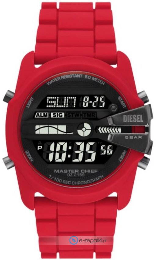 Zegarek męski DZ2159 marki Diesel to stylowe połączenie funkcjonalności oraz ciekawego wzornictwa. Niestereotypowy wygląd zegarka osiągnięto również dzięki tarczy w kolorze czarnym. Zaprezentowana metodą cyfrową bieżąca godzina jest czytelna i prosta do odczytania. Koperta jest w kolorze czerwonym szeroka jest na 44 mm oraz ma grubość 16 mm - w kształcie okrągłym.