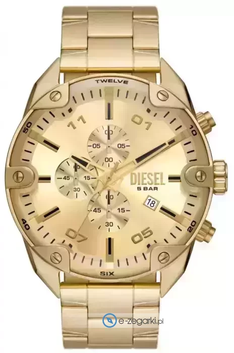 Zegarek męski DZ4608 marki Diesel to ciekawa propozycja dla osób ceniących sobie dbałość o detale a także bezproblemowe zachowanie mechanizmów. Wysokiej trwałości tarczę zegarka pokryto złotym kolorem. Zegarek ten prezentuje aktualny czas w formacie analogowym dzięki temu odczyt jest bezproblemowy. Koperta jest pokryta kolorem złotym szeroka jest na 49 mm oraz ma grubość 13 mm - cechuje się okrągłym kształtem.