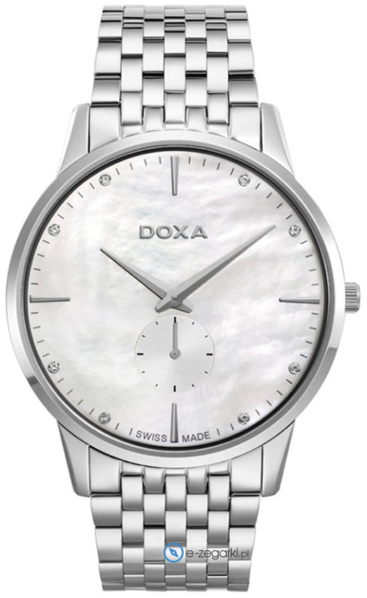 Model 105.10.051D.10 marki Doxa to elegancki zegarek naręczny męski, który posiada ciekawe rozwiązania oraz funkcje. Styl zapewnia wysokiej jakości cyferblat w kolorze srebrnym. Zegarek ten prezentuje godzinę w formacie analogowym dzięki temu odczyt jest intuicyjny. Koperta jest w kolorze srebrnym szeroka jest na 39 mm oraz ma grubość 6 mm - posiada okrągły kształt.