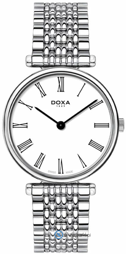 Model 112.10.014.10 marki Doxa to gustowny zegarek naręczny męski, który posiada ciekawe rozwiązania oraz funkcje. Charakterystyczny wygląd zegarka uzyskano również dzięki tarczy w kolorze białym. Zaprezentowana metodą analogową aktualna godzina jest czytelna i prosta do odczytania. Koperta jest ozdobiona kolorem srebrnym szeroka jest na 40 mm oraz ma grubość 7 mm - cechuje się okrągłym kształtem.
