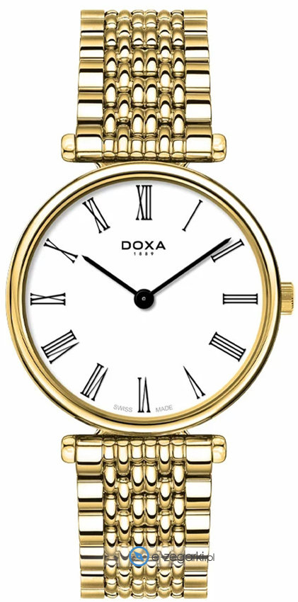 Model 112.30.014.11 marki Doxa to elegancki zegarek naręczny męski, który wyposażono w pomysłowe rozwiązania i funkcje. Ciekawy wygląd czasomierza osiągnięto m.in. poprzez cyferblat w kolorze białym. Godzina pokazywana jest w sposób analogowy co intuicyjnie pozwala ją odczytać. Koperta jest w kolorze złotym szeroka jest na 40 mm oraz ma grubość 7 mm - w kształcie okrągłym.