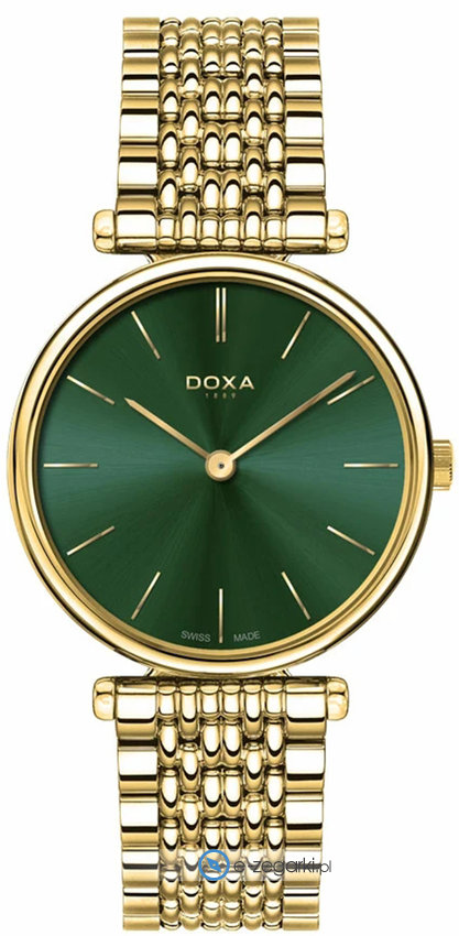Zegarek męski 112.30.131.11 marki Doxa to idealne połączenie funkcjonalności i ciekawego designu. Charakter zapewnia wysokiej klasy tarcza w kolorze zielonym. Pokazana metodą analogową bieżąca godzina jest czytelna i łatwa do sprawdzenia. Koperta została pokryta kolorem złotym szeroka jest na 40 mm oraz ma grubość 7 mm - posiada okrągły kształt.