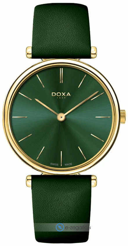 Męski zegarek Doxa 112.30.131.83 to zegarek, który dzięki swemu wzornictwu zawsze będzie prezentował się dobrze. Atrakcyjny wygląd czasomierza osiągnięto także dzięki tarczy w kolorze zielonym. Zaprezentowana metodą analogową bieżąca godzina jest czytelna i prosta do sprawdzenia. Koperta w odcieniach koloru złotego szeroka jest na 40 mm oraz ma grubość 7 mm - w kształcie okrągłym.