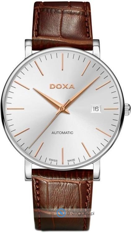 Model 171.10.021R.02 marki Doxa to stylowy zegarek naręczny męski, który wyposażono w pomysłowe rozwiązania oraz funkcje. Wysokiej jakości tarczę zegarka ozdobiono srebrnym kolorem. Aktualna godzina prezentowana jest w sposób analogowy co bez trudu pozwala ją odczytać. Koperta została ozdobiona kolorem srebrnym szeroka jest na 40 mm oraz ma grubość 10 mm - w kształcie okrągłym.