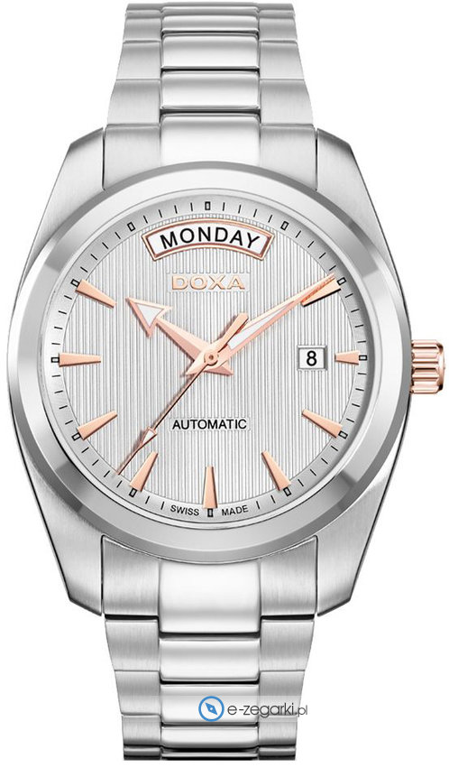 Model D205RWH marki Doxa to gustowny zegarek naręczny męski, który jest wyposażony w pomysłowe rozwiązania oraz funkcje. Stylu nadaje wysokiej jakości cyferblat w kolorze srebrnym. Aktualna godzina prezentowana jest w sposób analogowy co bez trudu pozwala ją odczytać. Koperta została ozdobiona kolorem srebrnym szeroka jest na 40 mm oraz ma grubość 11 mm - w kształcie okrągłym.