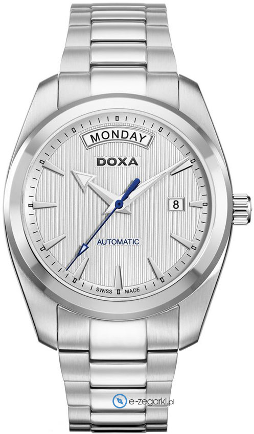 Model D205SWH marki Doxa to elegancki zegarek naręczny męski, który posiada ciekawe rozwiązania oraz funkcje. Wysokiej trwałości cyferblat zegarka pokryto srebrnym kolorem. Zegarek ten pokazuje aktualny czas w formacie analogowym dzięki temu odczyt jest intuicyjny. Koperta jest w kolorze srebrnym szeroka jest na 40 mm oraz ma grubość 11 mm - posiada okrągły kształt.
