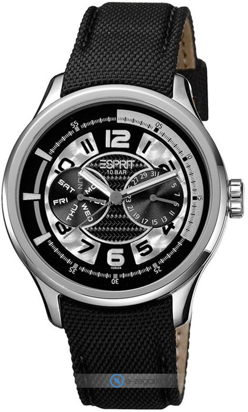 Zegarek ES102851005 zasilany jest za pomocą baterii kwarcowej. Pasek parciany jest w kolorze czarnym zrobiony jest z wysokiej jakości skóry.