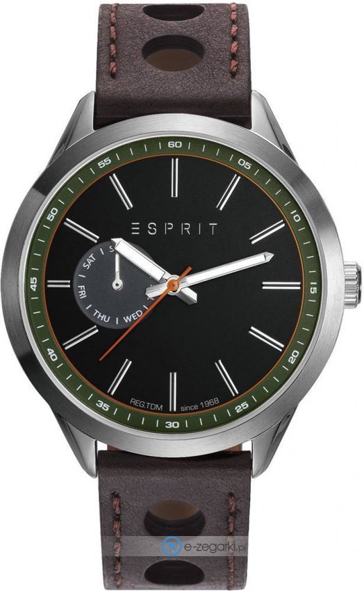 Model ES109211003 marki Esprit to elegancki zegarek naręczny męski, który wyposażono w pomysłowe rozwiązania i funkcje. Charakterystyczny wygląd czasomierza uzyskano dzięki tarczy w kolorze ciemnym. Koperta szeroka jest na 43 mm - charakteryzuje się okrągłym kształtem.