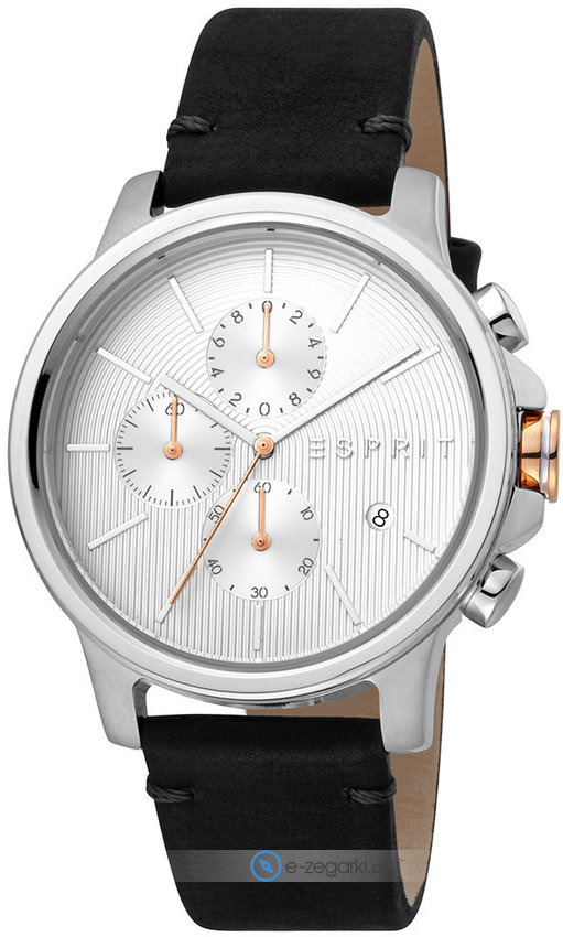 Model ES1G155L0015 marki Esprit to stylowy zegarek naręczny męski, który jest wyposażony w pomysłowe rozwiązania oraz funkcje. Atrakcyjną budowę czasomierza uzyskano z pomocą tarczy w kolorze srebrnym. Zaprezentowana metodą analogową aktualna godzina jest czytelna i łatwa do sprawdzenia. Koperta w odcieniach koloru srebrnego szeroka jest na 42 mm oraz ma grubość 11 mm - ma okrągły kształt.