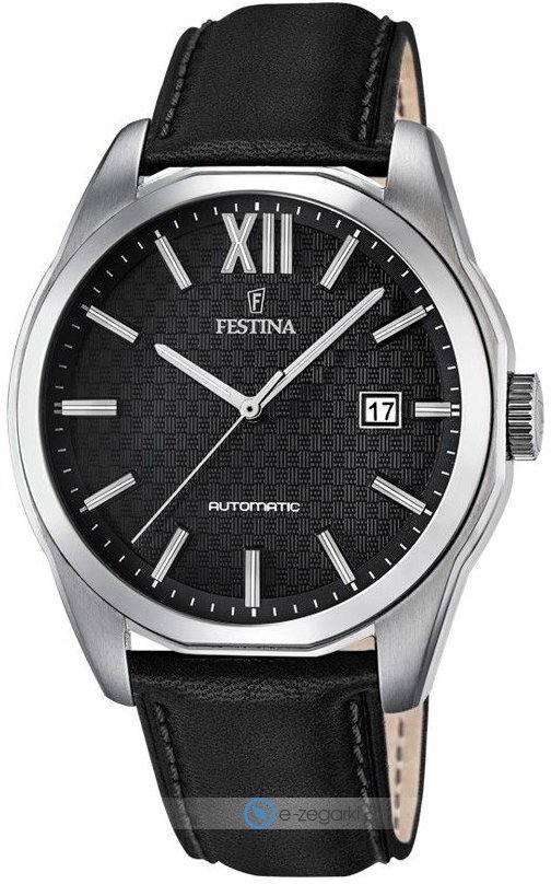 Festina F16885-4 - męski zegarek kierowany dla osób szukających zegarka z serii Festina Automatic. Atrakcyjny wygląd zegarka uzyskano także dzięki tarczy w kolorze czarnym. Zegarek ten pokazuje godzinę w formacie analogowym dzięki temu odczyt jest intuicyjny. Koperta w odcieniach koloru srebrnego szeroka jest na 43 mm oraz ma grubość 13 mm - w kształcie okrągłym.