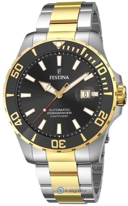 Zegarek męski F20532-2 z serii Festina Automatic marki Festina. Charakteru dodaje wysokiej klasy cyferblat w kolorze czarnym. Zaprezentowana metodą analogową aktualna godzina jest czytelna i łatwa do sprawdzenia. Koperta jest w kolorze srebrnym szeroka jest na 44 mm - w kształcie okrągłym.