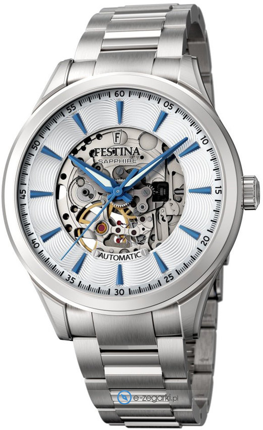 Zegarek męski F20536-1 marki Festina to idealne połączenie funkcjonalności oraz ciekawego wzornictwa. Model ten jest z serii Festina Automatic. Ciekawy wygląd zegarka uzyskano m.in. poprzez tarczę w kolorze białym. Godzina prezentowana jest w sposób analogowy co niezmiernie łatwo pozwala ją odczytać. Koperta jest pokryta kolorem srebrnym szeroka jest na 43 mm - w kształcie okrągłym.