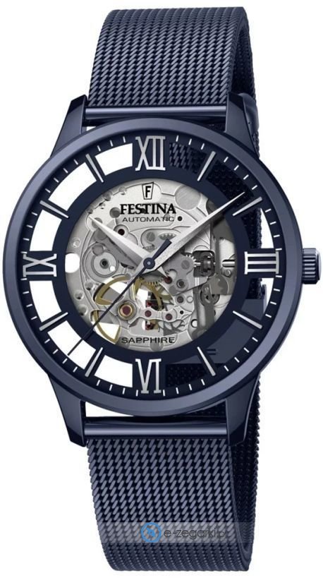 Zegarek męski F20574-1 marki Festina to stylowe połączenie funkcjonalności i modnego designu. Model ten jest z serii Festina Automatic. Stylu dodaje wysokiej klasy tarcza w kolorze niebieskim. Pokazana metodą analogową bieżąca godzina jest czytelna i szybka do odczytania. Koperta jest w kolorze niebieskim szeroka jest na 42 mm - ma okrągły kształt.