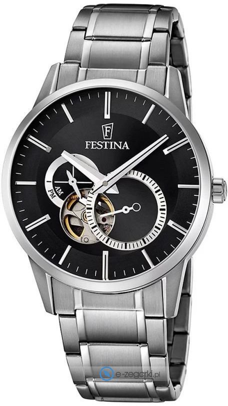 Model męski F6845-4 marki Festina z kolekcji Festina Automatic. Charakteru nadaje wysokiej jakości tarcza w kolorze czarnym. Zaprezentowana metodą analogową aktualna godzina jest czytelna i szybka do odczytania. Koperta jest ozdobiona kolorem srebrnym szeroka jest na 42 mm oraz ma grubość 11 mm - cechuje się okrągłym kształtem.