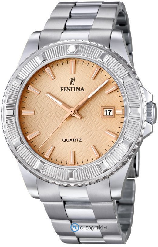Festina tego brandu chyba nie ma potrzeby specjalnie prezentować. To znana i doceniana praktycznie na całym świecie marka zajmująca się produkcją zegarków, która narodziła się początkiem XX wieku w szwajcarskiej miejscowości La Chaux-de-Fonds. Od czasu gdy marka weszła w skład osobnej grupy Festina Group w latach osiemdziesiątych poprzedniego stulecia stała się bardzo zauważalna. W dzisiejszych czasach zegarki Festina można dostać w ponad pięćdziesięciu krajach na wszystkich kontynentach. Markę Festina bardzo często można zobaczyć na różnego rodzaju imprezach sportowych, np wyścigach kolarskich Tour de Pologne. Istotną cechą zgeraków Festina jest posiadanie specjalnie utwardzanego szkiełka mineralnego na które producent udziela osobnej 5 letniej gwarancji. Współcześnie twarzą marki jest popularny i ceniony aktor Gerard Butler, można go dostrzec w wielu spotach reklamowych właśnie z chronometrem Festina.