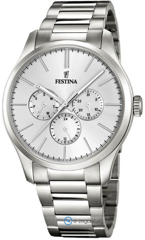 Zegarek F16810-1 marki Festina to gustowny zegarek naręczny męski, który posiada ciekawe rozwiązania i funkcje. Model ten jest z serii Festina Boyfriend. Charakteru nadaje wysokiej klasy tarcza w kolorze srebrnym. Zegarek ten pokazuje aktualny czas w formacie analogowym dzięki czemu odczyt jest intuicyjny. Koperta w barwach koloru srebrnego szeroka jest na 43 mm oraz ma grubość 9 mm - posiada okrągły kształt.