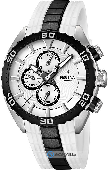Męski zegarek F16664-1 z serii Festina Chrono Bike marki Festina to połączenie estetyki i nieprzeciętnych mechanizmów. Styl zapewnia wysokiej jakości cyferblat w kolorze białym. Zegarek ten pokazuje aktualny czas w formacie analogowym dzięki czemu odczyt jest bardzo łatwy. Koperta jest w kolorze srebrnym szeroka jest na 45 mm oraz ma grubość 12 mm - w kształcie okrągłym.
