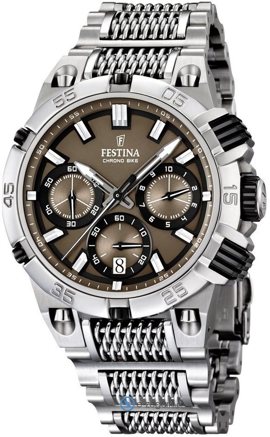 Festina tego brandu raczej nie trzeba specjalnie przedstawiać. To lubiana i ceniona praktycznie na całym świecie marka zajmująca się produkcją zegarków, która narodziła się początkiem XX wieku w Szwajcarii. Od czasu gdy marka weszła w skład osobnej grupy Festina Group w latach 80-tych poprzedniego stulecia stała się nizwykle popularna. Aktualnie zegarki Festina można dostać w ponad pięćdziesięciu krajach na wszystkich kontynentach. Markę Festina bardzo często można zobaczyć na różnego rodzaju imprezach sportowych, np wyścigach kolarskich Tour de France. Istotną cechą zgeraków Festina jest posiadanie specjalnego utwardzanego szkiełka mineralnego na które marka udziela osobnej 5 letniej gwarancji. Obecnie twarzą marki jest popularny i szanowany aktor Gerard Butler, można go zauważyć w wielu reklamach właśnie z zegarkiem Festina.
