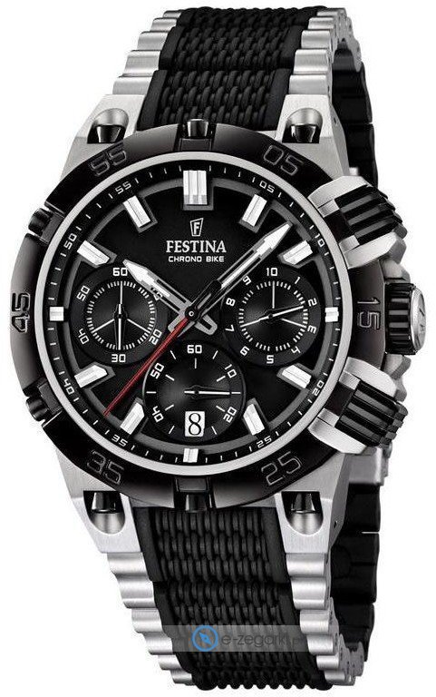Festina tej marki raczej nie ma konieczności specjalnie przedstawiać. To znana i ceniona w zasadzie na całym świecie marka zajmująca się produkcją czasomierzy, która narodziła się na początku XX wieku w Szwajcarii. Od czasu kiedy marka trafiła do osobnej grupy Festina Group w latach osiemdziesiątych poprzedniego stulecia stała się bardzo zauważalna. Aktualnie zegarki Festina można dostać w przeszło pięćdziesięciu krajach na świecie. Markę Festina bardzo często można zobaczyć na różnego przekroju imprezach sportowych, np wyścigach kolarskich Tour de Pologne. Wyróżnikiem zgeraków Festina jest posiadanie specjalnie utwardzanego szkiełka mineralnego na które marka udziela osobnej pięcio letniej gwarancji. Współcześnie twarzą marki jest znany i ceniony aktor Gerard Butler, można go dostrzec w wielu spotach reklamowych właśnie z czasomierzem Festina.