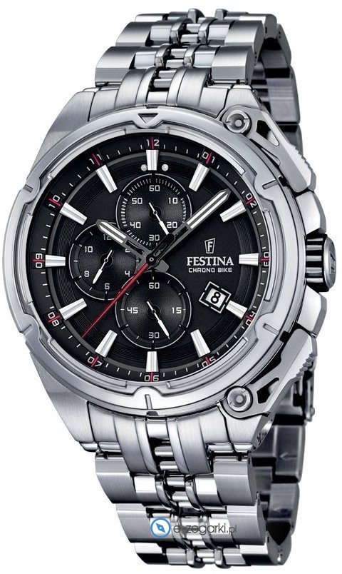Model męski F16881-4 marki Festina należy do serii Festina Chrono Bike. Charakterystyczną stylistykę zegarka uzyskano z pomocą tarczy w kolorze czarnym. Aktualna godzina przedstawiona jest w sposób analogowy co niezmiernie łatwo pozwala ją odczytać. Koperta w odcieniach koloru srebrnego szeroka jest na 44 mm oraz ma grubość 15 mm - wyróżnia się okrągłym kształtem.