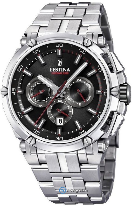Zegarek F20327-6 marki Festina to gustowny zegarek naręczny męski, który jest wyposażony w ciekawe rozwiązania oraz funkcje. Model ten należy do serii Festina Chrono Bike. Niebanalny wygląd czasomierza uzyskano również dzięki tarczy w kolorze czarnym. Godzina prezentowana jest w sposób analogowy co bez trudu pozwala ją odczytać. Koperta jest w kolorze srebrnym szeroka jest na 47 mm oraz ma grubość 14 mm - charakteryzuje się okrągłym kształtem.