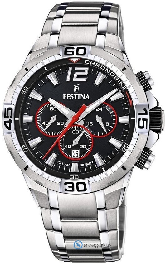 Festina tego brandu zapewne nie ma potrzeby specjalnie prezentować. To lubiana i doceniana praktycznie na całym świecie marka zajmująca się produkcją czasomierzy, która narodziła się początkiem XX wieku w Szwajcarii. Od czasu gdy marka weszła w skład nowej grupy Festina Group w latach 80-tych ubiegłego stulecia stała się bardzo zauważalna. W dzisiejszych czasach zegarki Festina można kupić w ponad 50 krajach na wszystkich kontynentach. Markę Festina bardzo często można dostrzec na różnego przekroju imprezach sportowych, np wyścigach kolarskich Tour de France. Istotną cechą zgeraków Festina jest posiadanie specjalnie utwardzanego szkiełka mineralnego na które Festina udziela osobnej 5 letniej gwarancji. Współcześnie twarzą marki jest słynny i szanowany aktor Gerard Butler, można go zobaczyć w wielu spotach reklamowych właśnie z zegarkiem Festina.