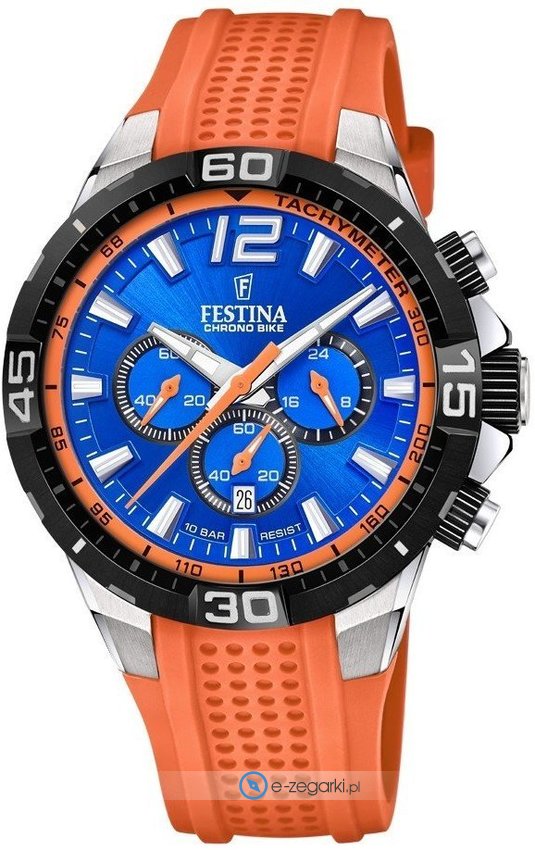 Festina tego brandu zapewne nie ma konieczności specjalnie przedstawiać. To znana i ceniona w zasadzie na całym świecie marka zajmująca się produkcją czasomierzy, która narodziła się na początku XX wieku w szwajcarskiej miejscowości La Chaux-de-Fonds. Od czasu gdy marka trafiła do osobnej grupy Festina Group w latach 80-tych poprzedniego stulecia stała się nizwykle popularna. Aktualnie zegarki Festina można nabyć w przeszło 50 krajach na świecie. Markę Festina bardzo często można dostrzec na różnego przekroju imprezach sportowych, np wyścigach kolarskich Tour de Pologne. Istotną cechą zgeraków Festina jest posiadanie specjalnego utwardzanego szkiełka mineralnego na które producent udziela osobnej pięcio letniej gwarancji. Obecnie twarzą marki jest słynny i szanowany aktor Gerard Butler, można go zauważyć w wielu spotach reklamowych właśnie z chronometrem Festina.