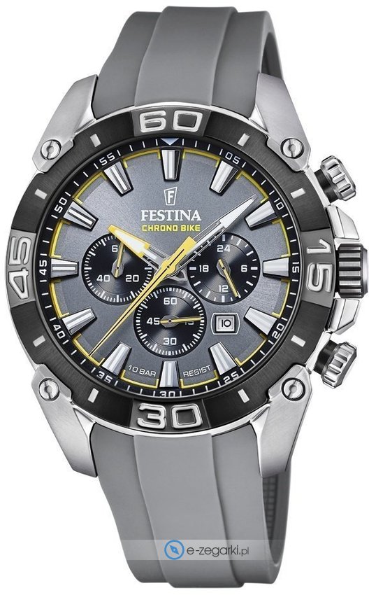 Festina F20544-8 - męski zegarek kierowany dla osób szukających zegarka z rodziny Festina Chrono Bike. Styl zapewnia wysokiej klasy cyferblat w kolorze szarym. Aktualna godzina prezentowana jest w sposób analogowy co bez trudu pozwala ją odczytać. Koperta szeroka jest na 47 mm - posiada okrągły kształt.