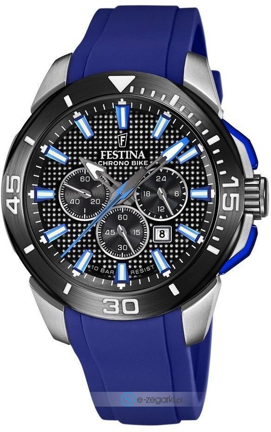 Festina F20642-1 to męski zegarek przeznaczony dla osób szukających zegarka z rodziny Festina Chrono Bike. Tarcza zegarka jest w kolorze czarnym. Godzina przedstawiona jest w sposób analogowy co bez trudu pozwala ją odczytać. Koperta jest w kolorze srebrnym szeroka jest na 47 mm oraz ma grubość 12 mm - charakteryzuje się okrągłym kształtem.
